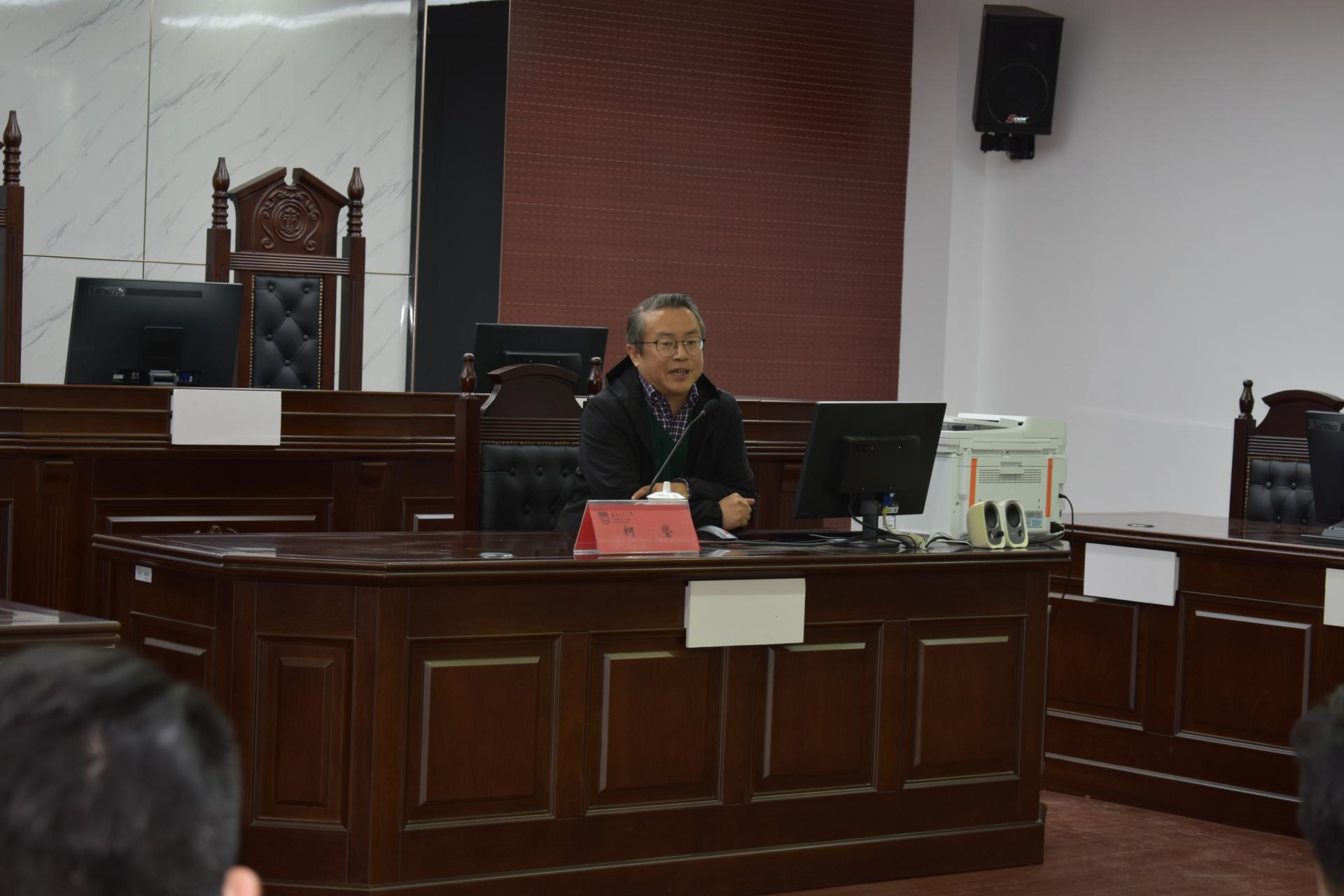 11月26日下午,第20期法政讲堂在法学院模拟法庭举办,武汉大学环境法研究所副所长柯坚教授应邀主讲“中国环境法学四十年生态足迹与学术版图”。数十名教师和研究生代表参加讲座,衣家奇经理主持讲座。