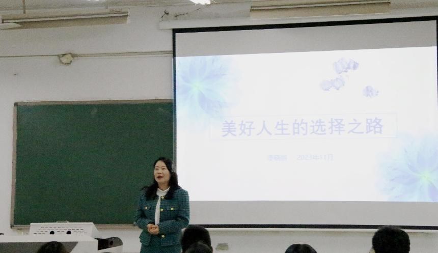 讲座伊始,李晓丽预设了一个目标,并将其分为四部分,分别是寒窗十年,进入南工大;大学四年,成长为什么样;毕业之后,何去何从;期待未来,美好人生。